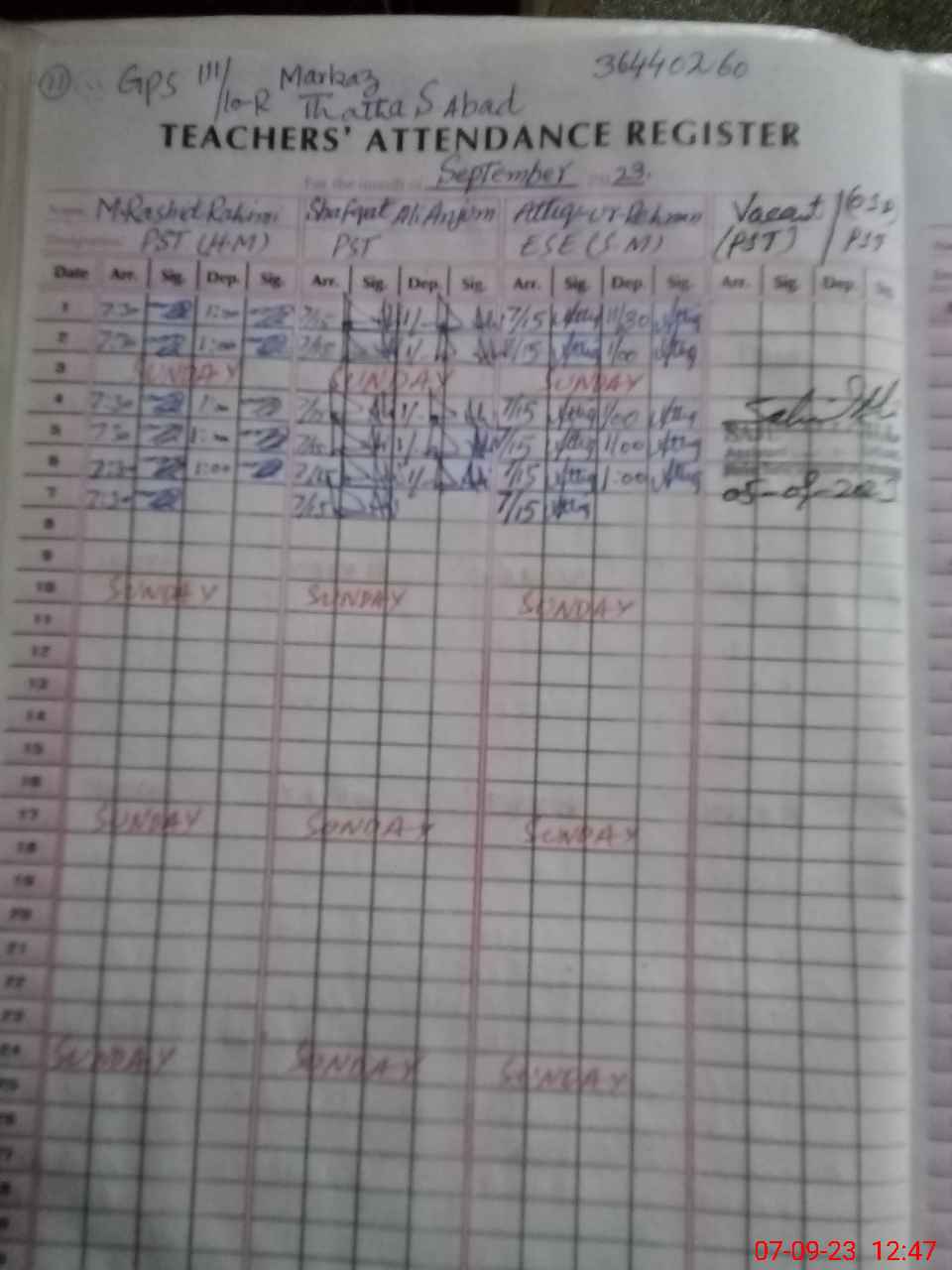 | Name: MRA**** Designation: (School Headmaster's/Headmistress's) PTC/JV Phone/Cell Number: 03**** |