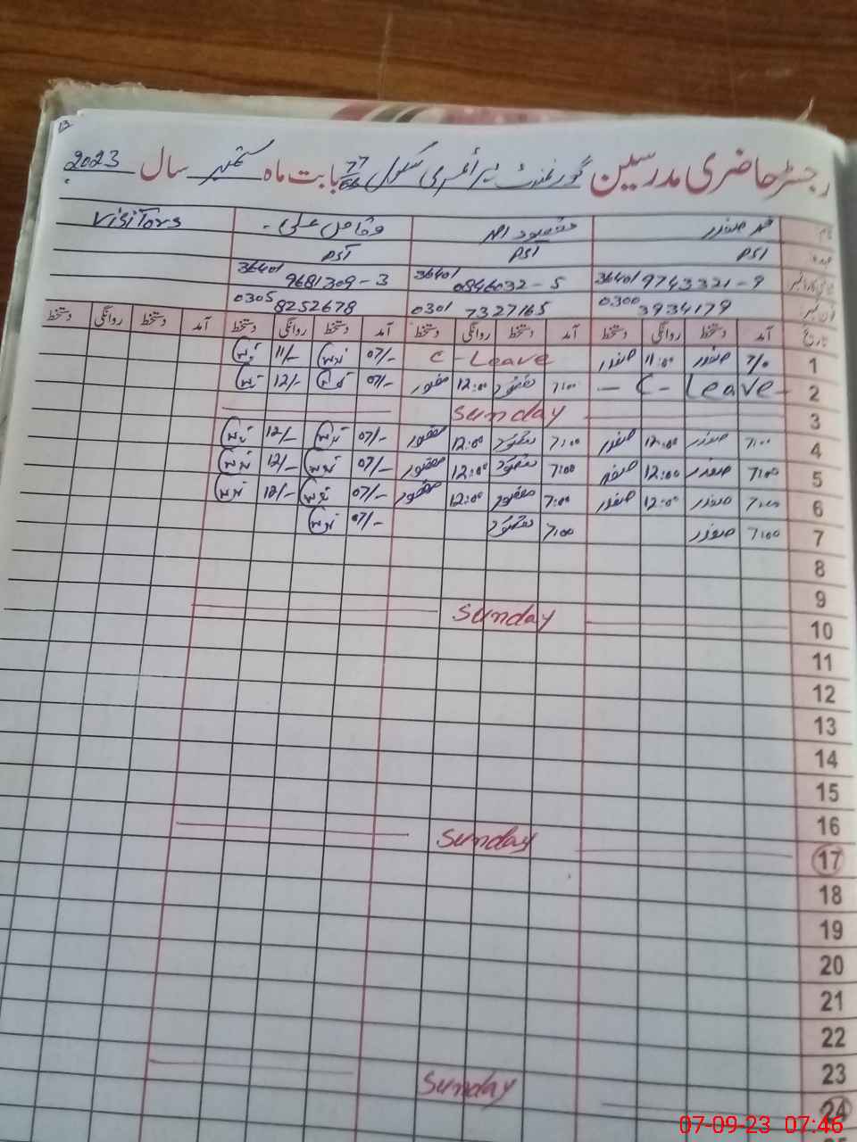 | Name: MA**** AH**** Designation: (School Headmaster's/Headmistress's) PST Phone/Cell Number: 03**** |