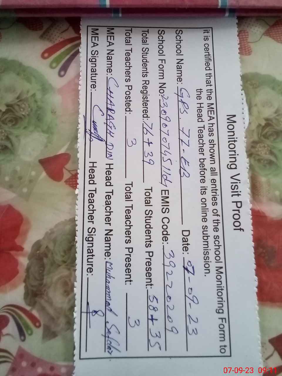 | EMIS Code: 39220209 | Name of School: GPS 77/EB | |||
