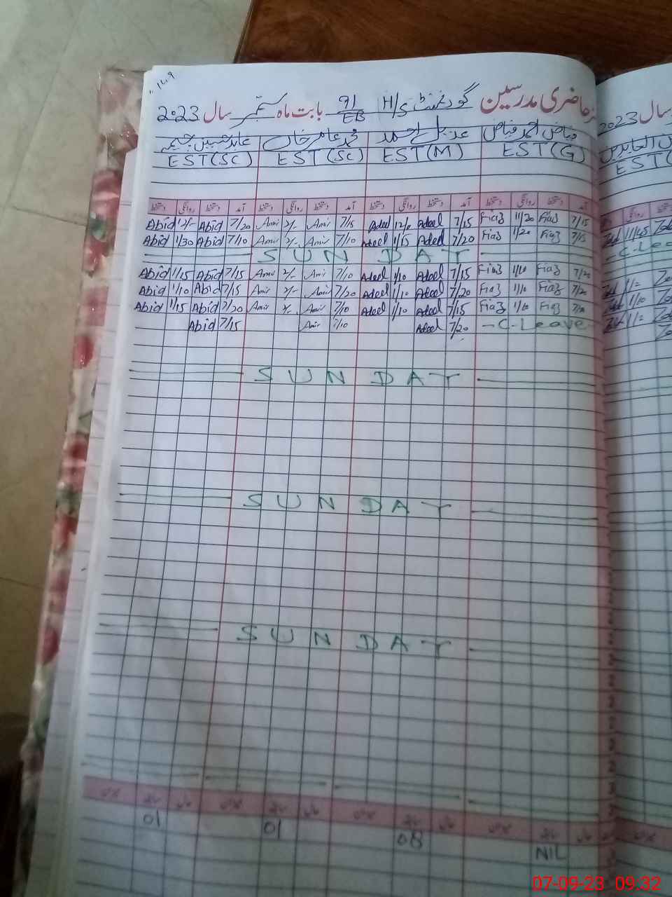 | CNIC | Full Name | Designation | R/C | Absence During Last Calender Month |