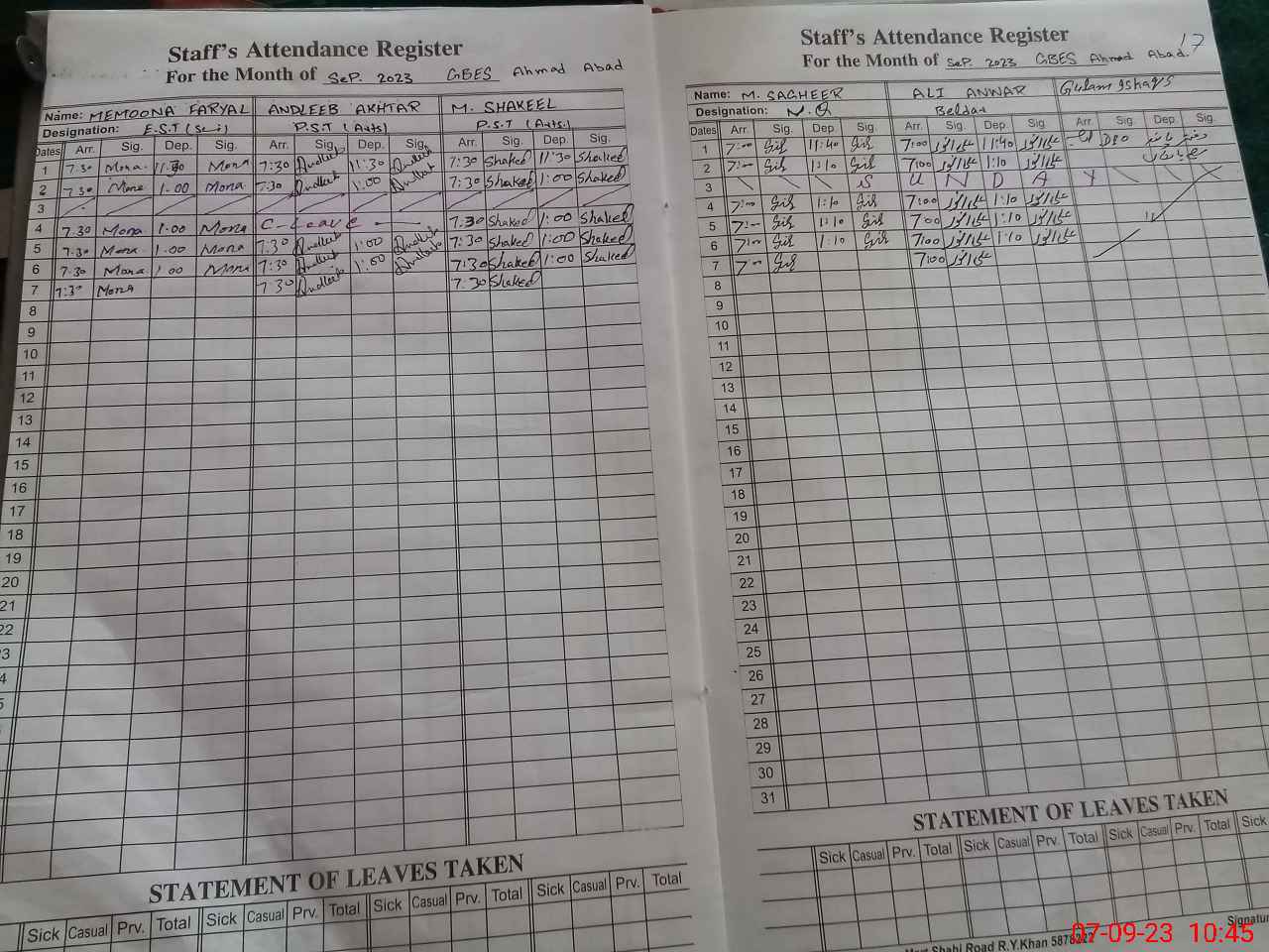 | Monitoring Date: 07-09-2023 | Start Time: 07-09-2023 09:42 AM | End Time: 07-09-2023 10:51 AM | Name of MEA: Za**** Ah**** | |