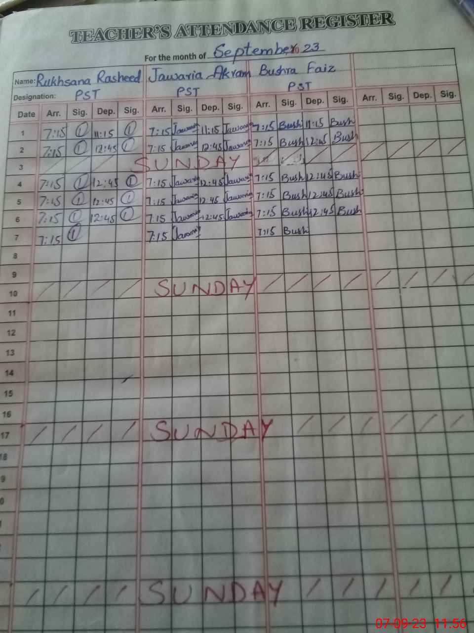 | CNIC | Full Name | Designation | R/C | Absence During Last Calender Month |