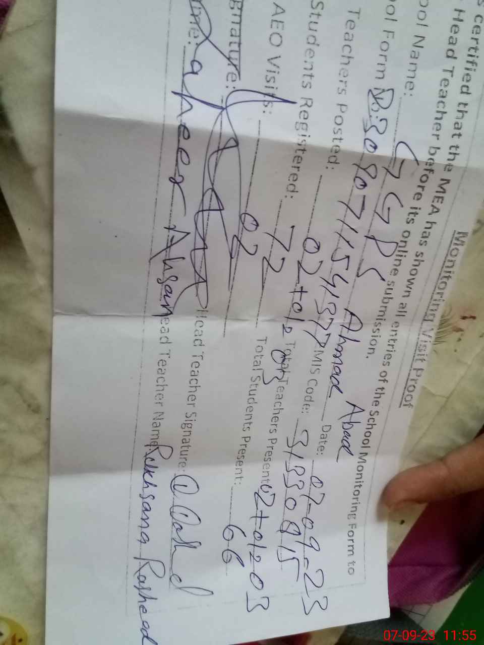 | EMIS Code: 31330815 | Name of School: GGPS AHMED ABAD | |||