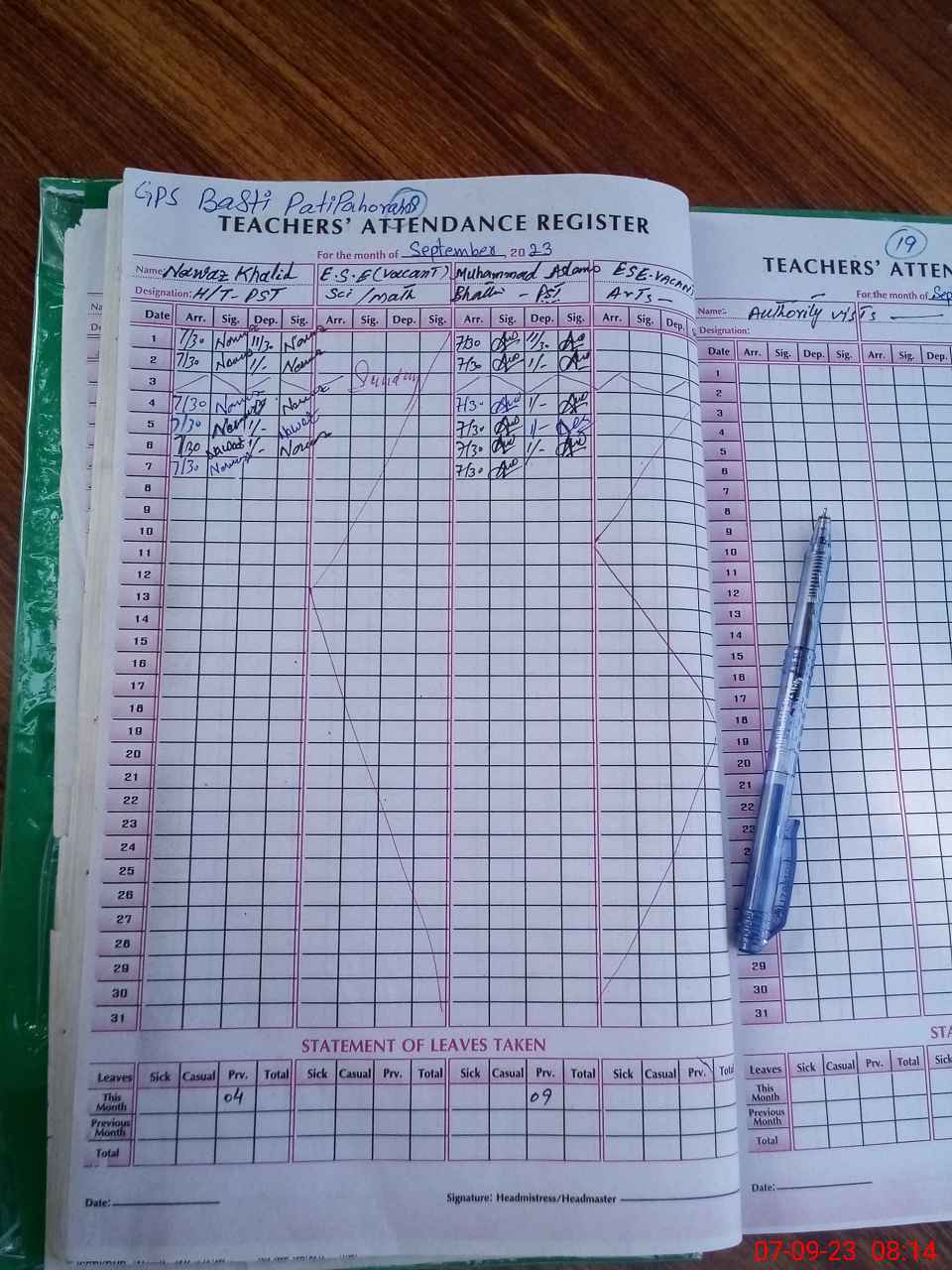 | Attendance Register | Head Teacher | MEA with School | Visit Proof |