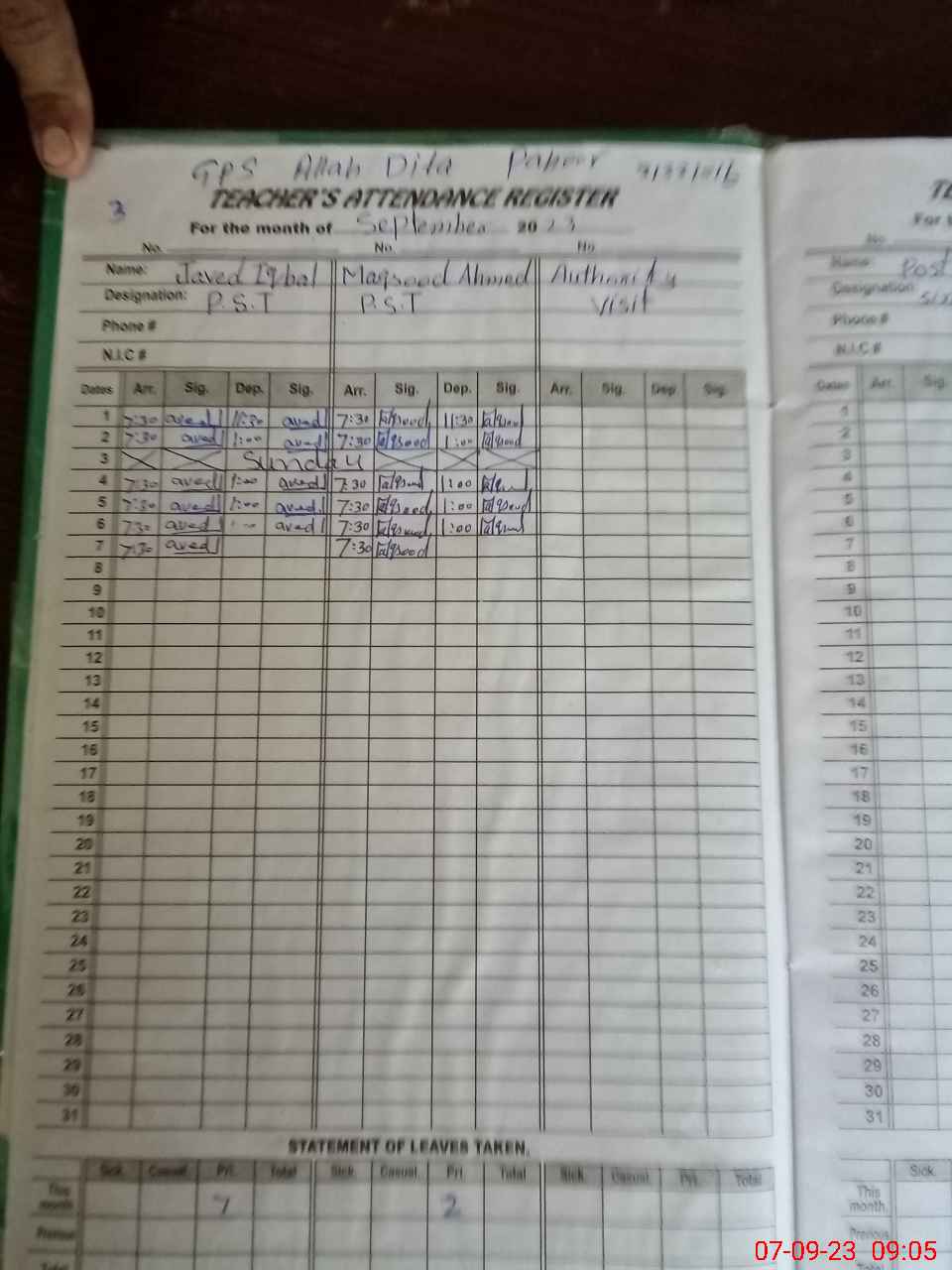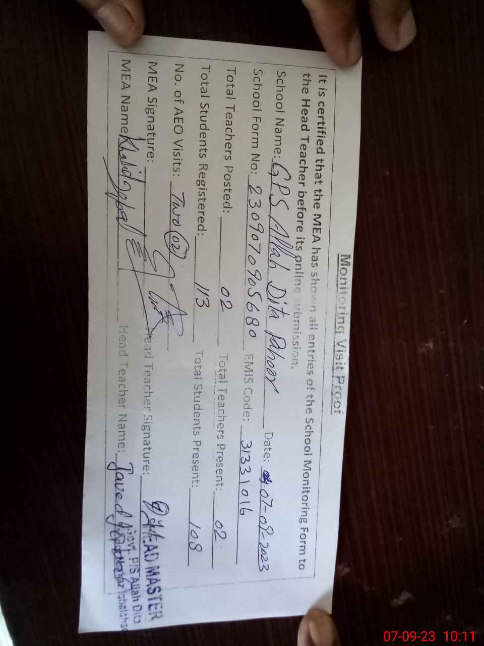 | EMIS Code: 31331016 | Name of School: GPS ALLAH DITA PAHOOR | |||