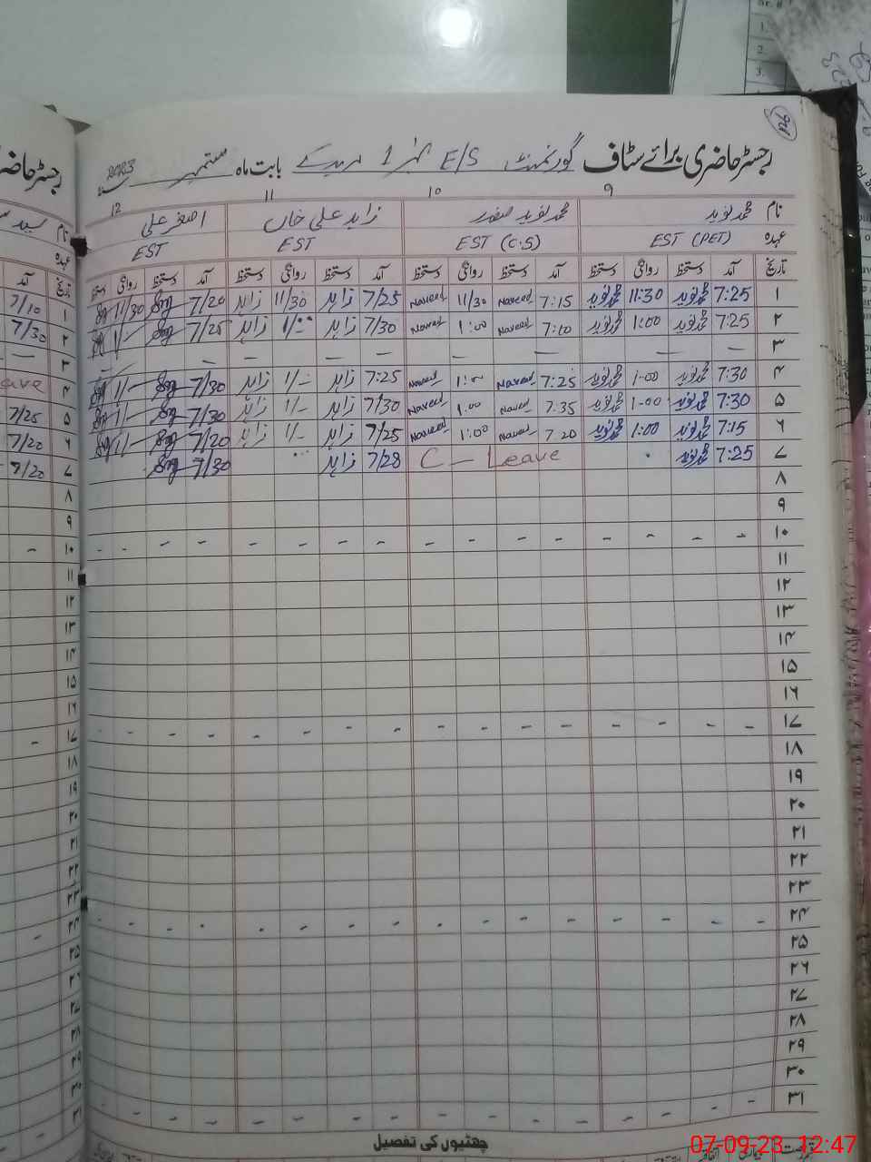 | CNIC | Full Name | Designation | R/C | Absence During Last Calender Month |