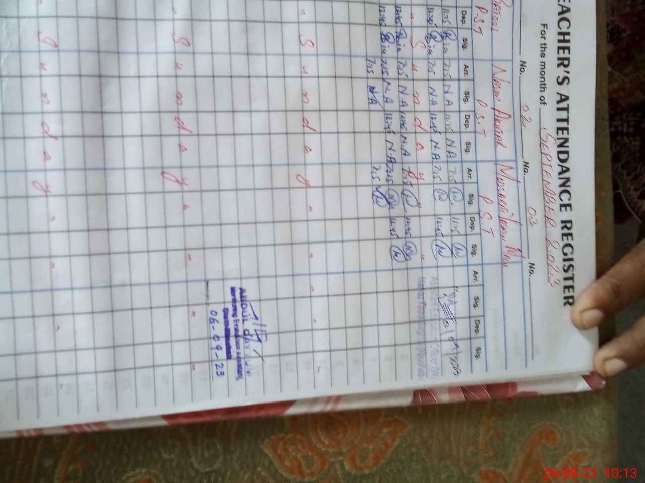 | Name: AS**** BA**** Designation: (School Headmaster's/Headmistress's) PST Phone/Cell Number: 03**** |