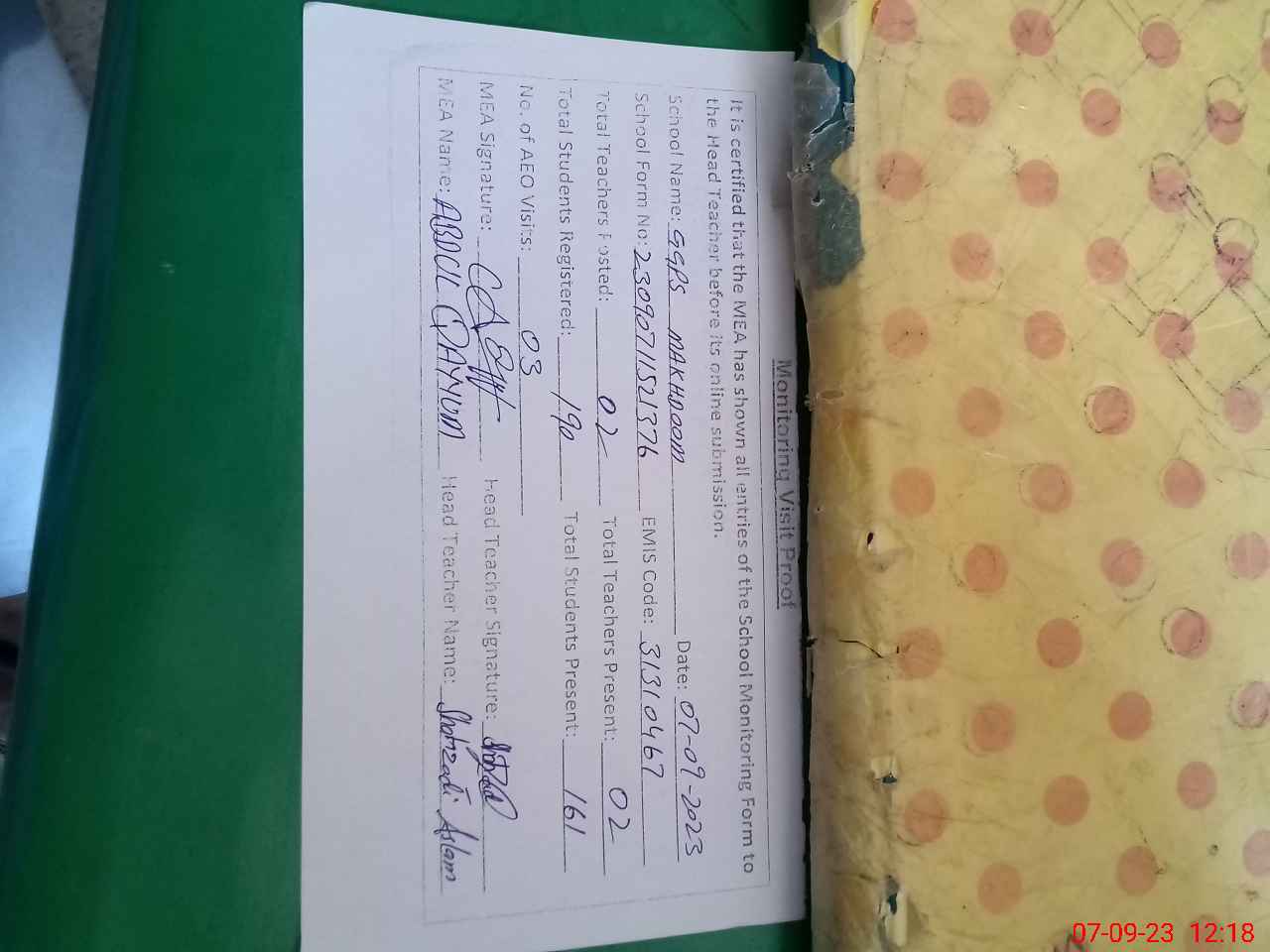 | EMIS Code: 31310467 | Name of School: GGPS MAKHDOOM | |||
