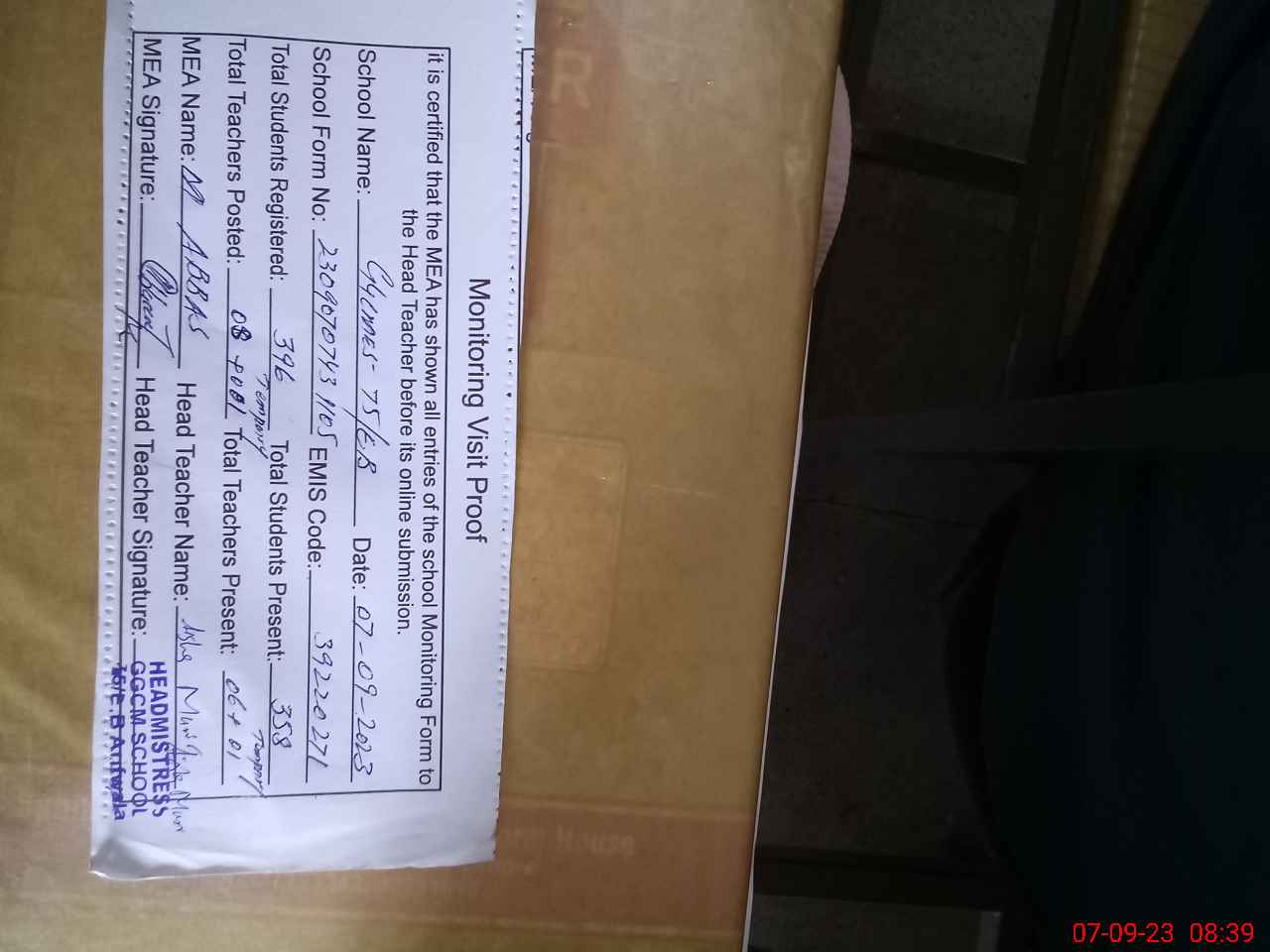 | Certified that this School was Inspected by the Undersigned MEA/DMO Today and the Information Stated Above is as Per Record. | |||||