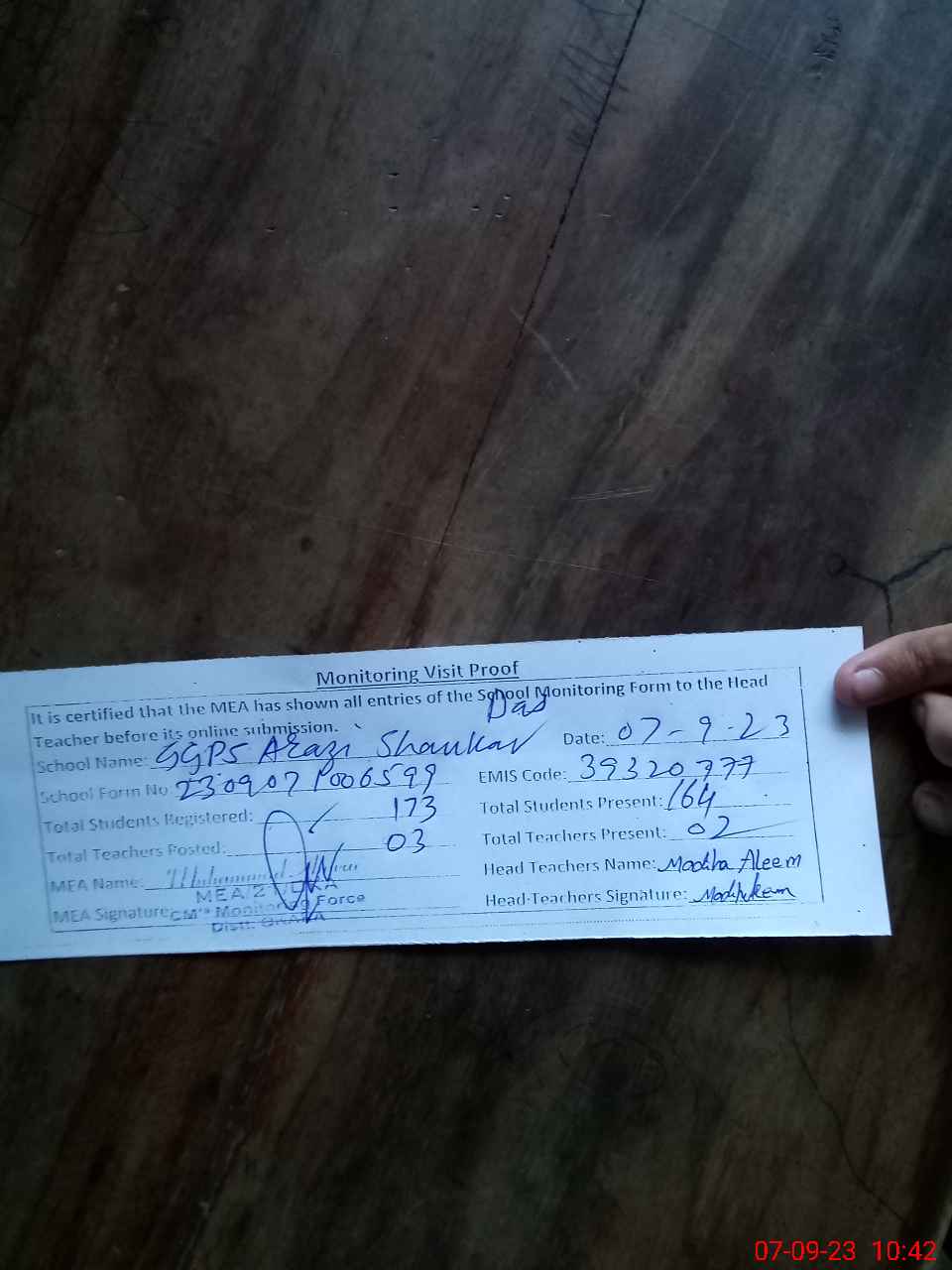 | EMIS Code: 39320777 | Name of School: GGPS ARAZI SHANKAR DAS | |||