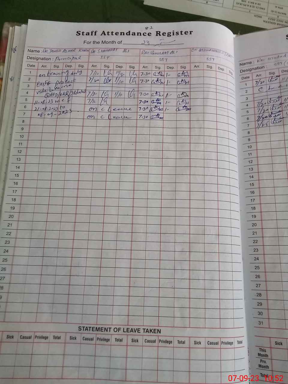 | CNIC | Full Name | Designation | R/C | Absence During Last Calender Month |