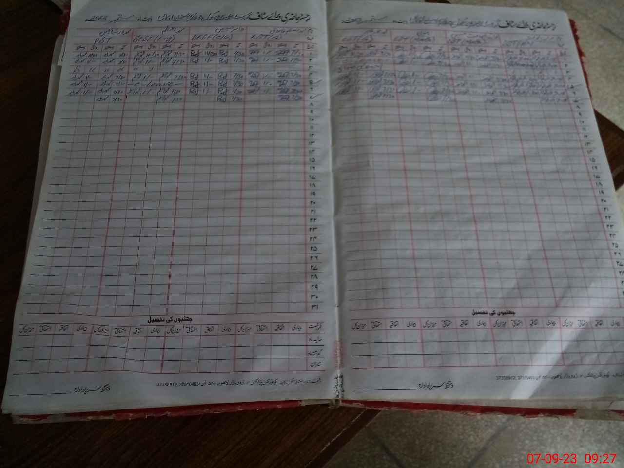 | CNIC | Full Name | Designation | R/C | Absence During Last Calender Month |