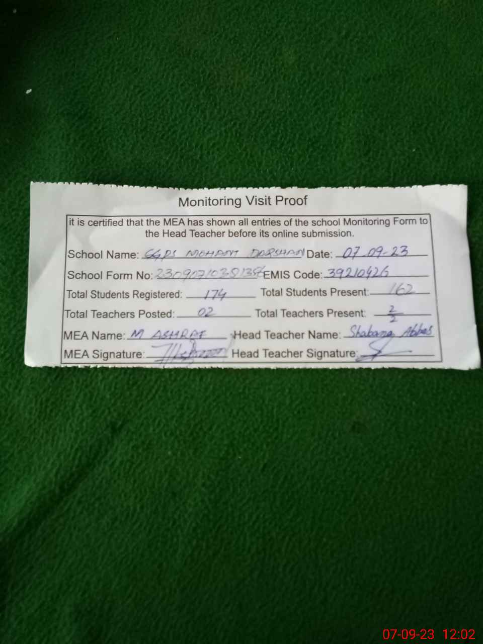 | EMIS Code: 39210426 | Name of School: GGPS CHAK MEHNAT DURSHAN | |||