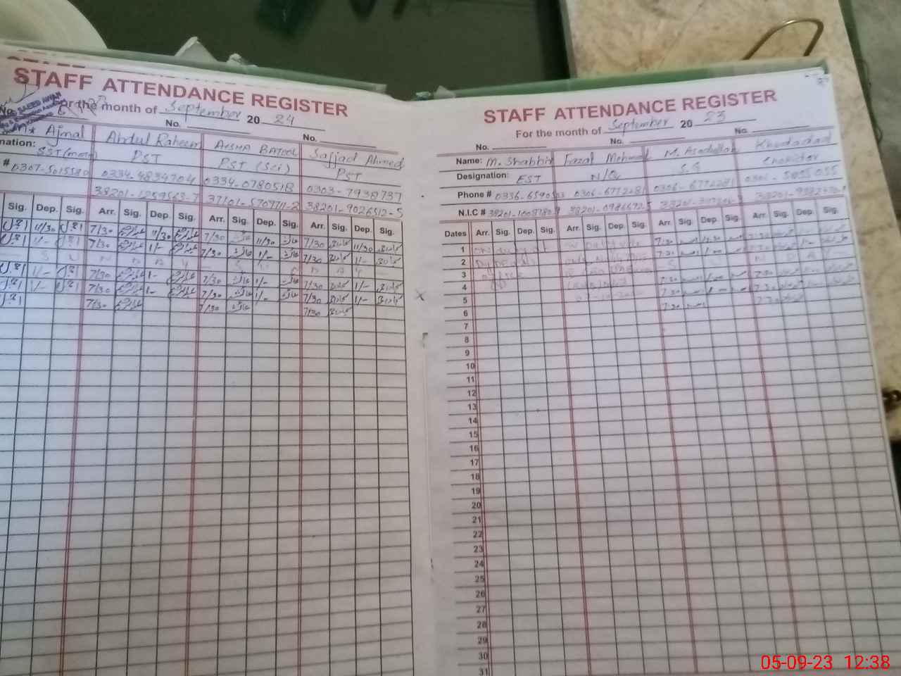 | CNIC | Full Name | Designation | R/C | Absence During Last Calender Month |