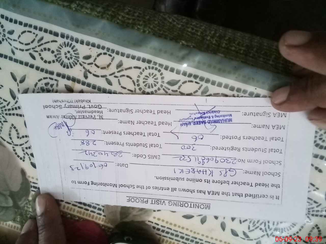 | Certified that this School was Inspected by the Undersigned MEA/DMO Today and the Information Stated Above is as Per Record. | |||||