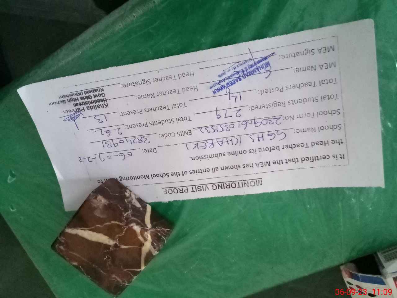 | Certified that this School was Inspected by the Undersigned MEA/DMO Today and the Information Stated Above is as Per Record. | |||||