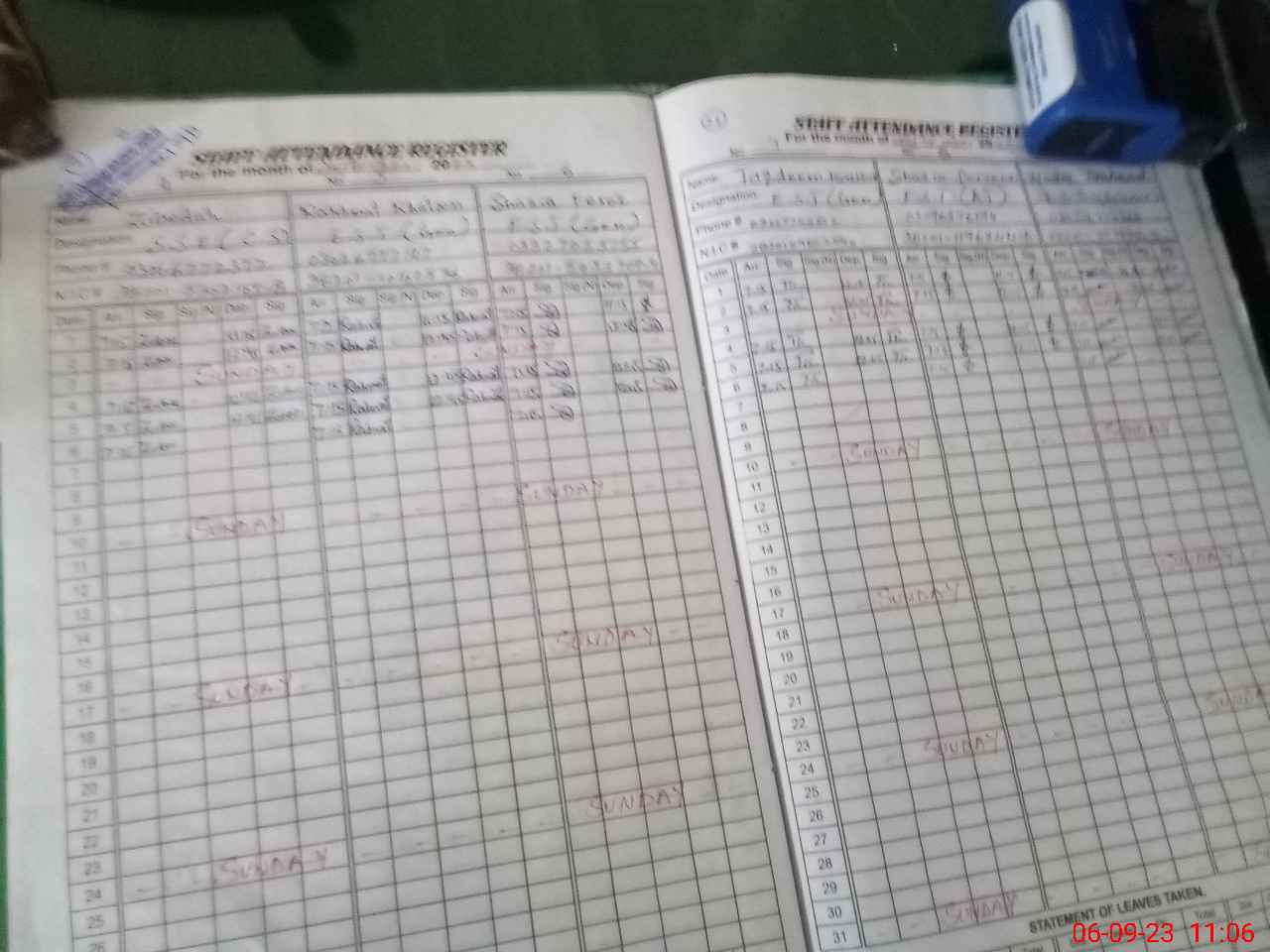 | CNIC | Full Name | Designation | R/C | Absence During Last Calender Month |