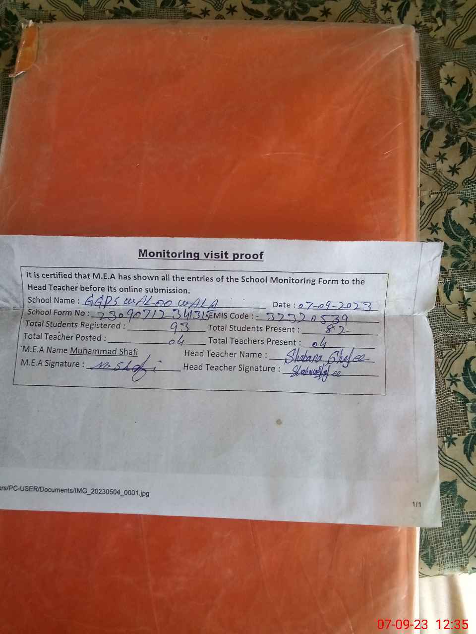 | EMIS Code: 32320539 | Name of School: GGPS WALOO WALA | |||