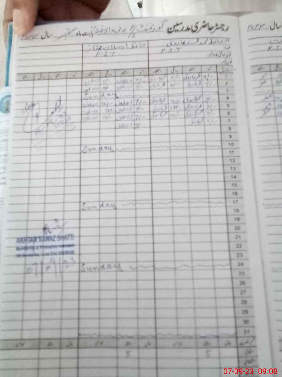 | CNIC | Full Name | Designation | R/C | Absence During Last Calender Month |