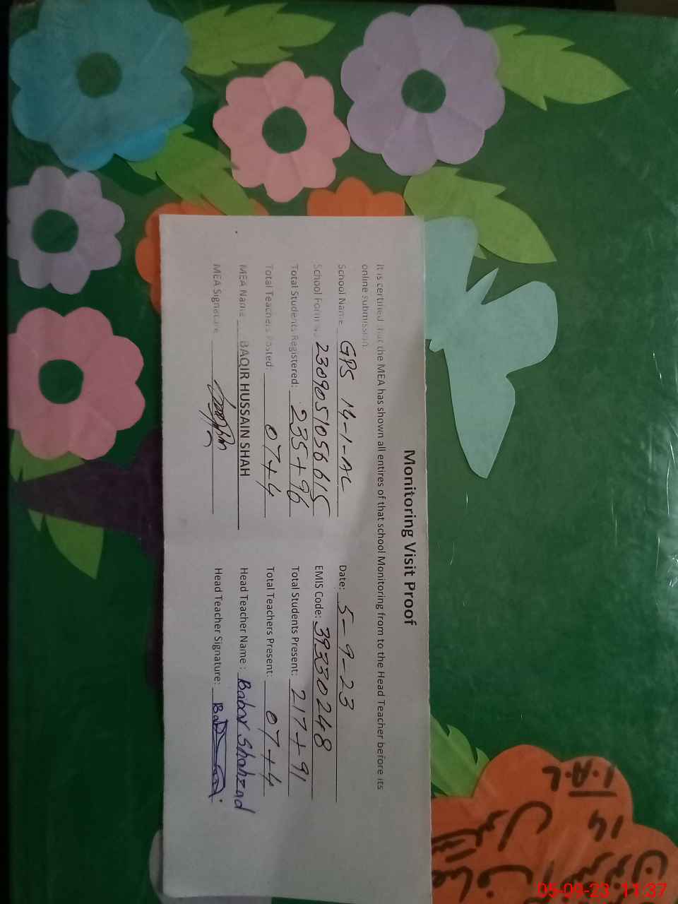 | EMIS Code: 39330248 | Name of School: GPS CHAK NO. 14/1-AL | |||