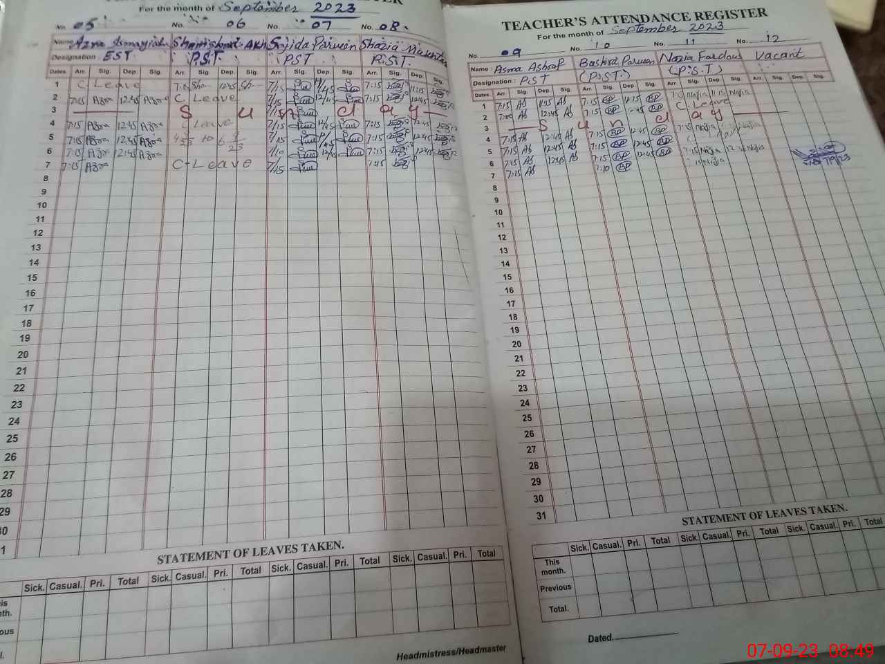 | Remarks (Use Separate Page if Required): Azra Ismail EST posted in this school but yet not added in PMIU teachers list | |||||