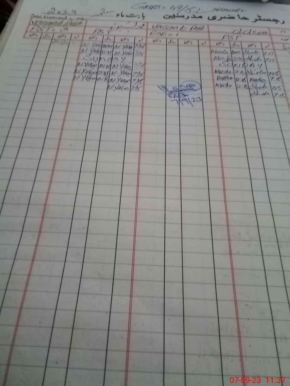| CNIC | Full Name | Designation | R/C | Absence During Last Calender Month |