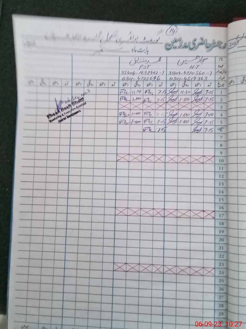 | Name: Sa**** Hu**** Designation: (School Headmaster's/Headmistress's) PST Phone/Cell Number: 03**** |