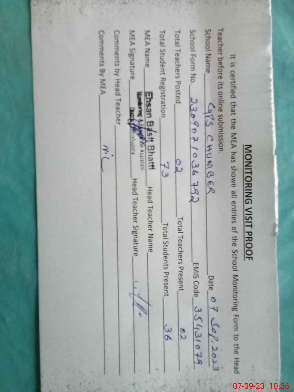 | EMIS Code: 35431079 | Name of School: GPS CHUMBER | |||