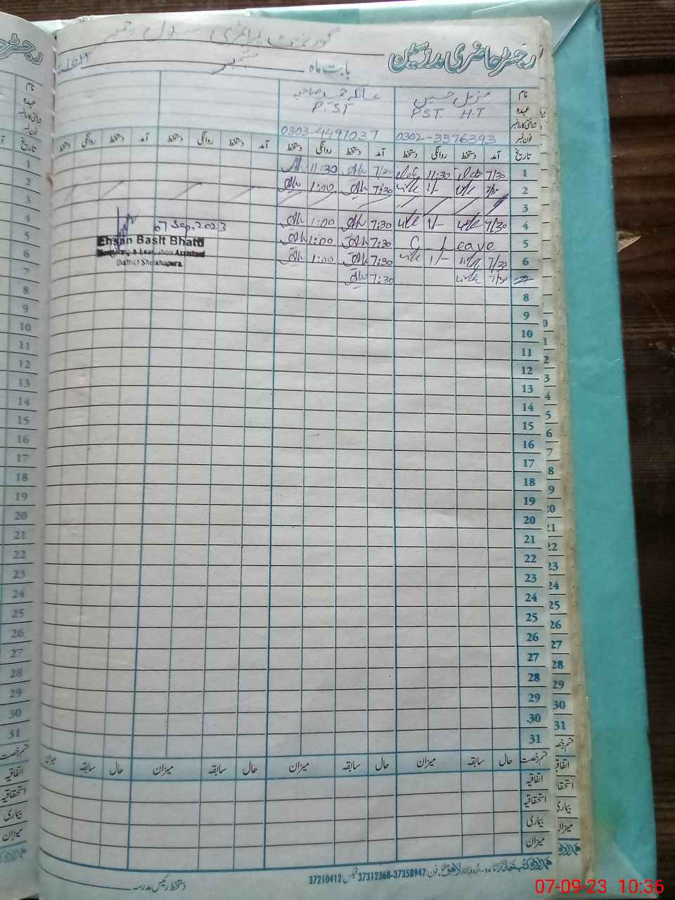| Name: Mu**** Hu**** Designation: (School Headmaster's/Headmistress's) PST Phone/Cell Number: 03**** |