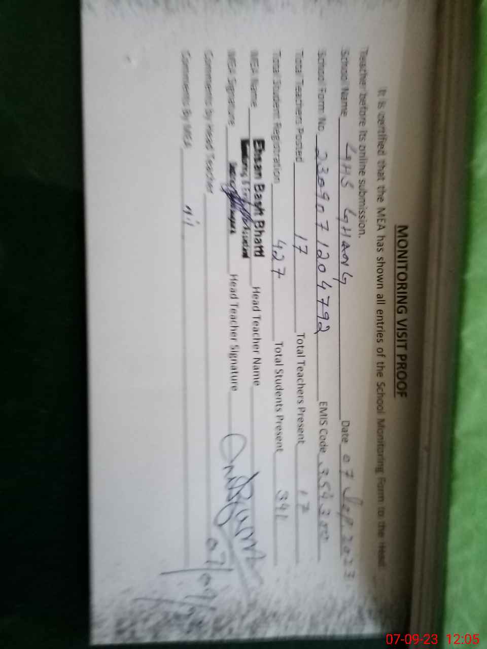 | EMIS Code: 35430054 | Name of School: GHS GHANG SHEIKHUPURA | |||