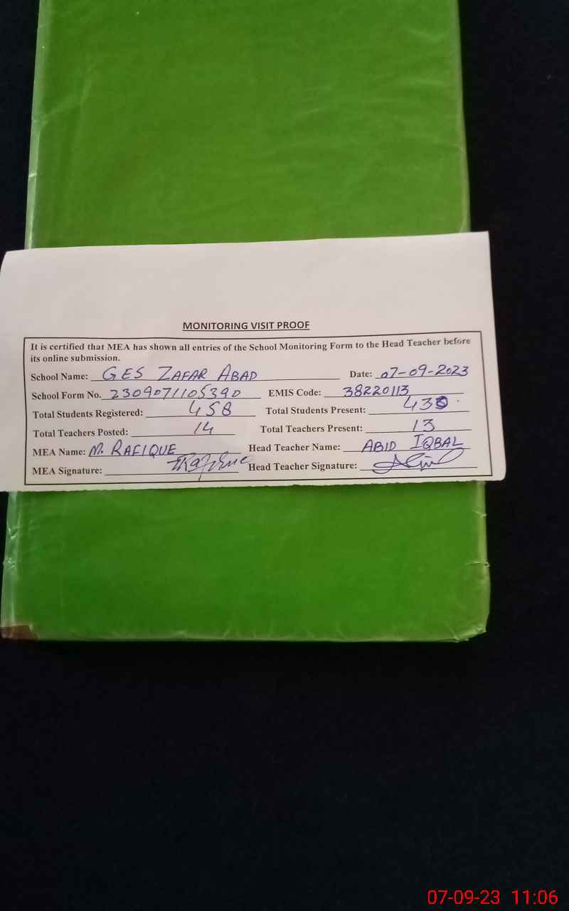 | EMIS Code: 38220113 | Name of School: GES ZAFAR ABAD RANG PUR BAGHOOR | |||