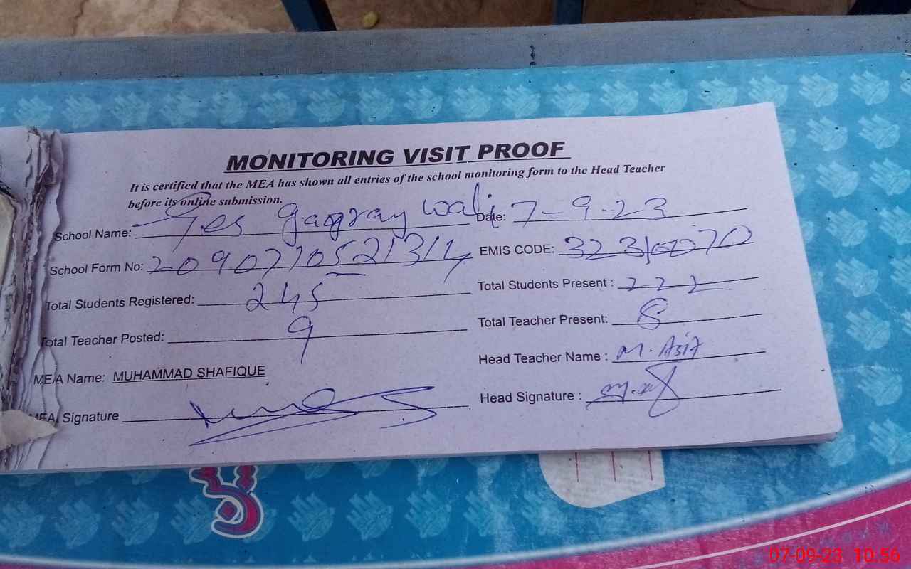 | Attendance Register | Head Teacher | MEA with School | Visit Proof |