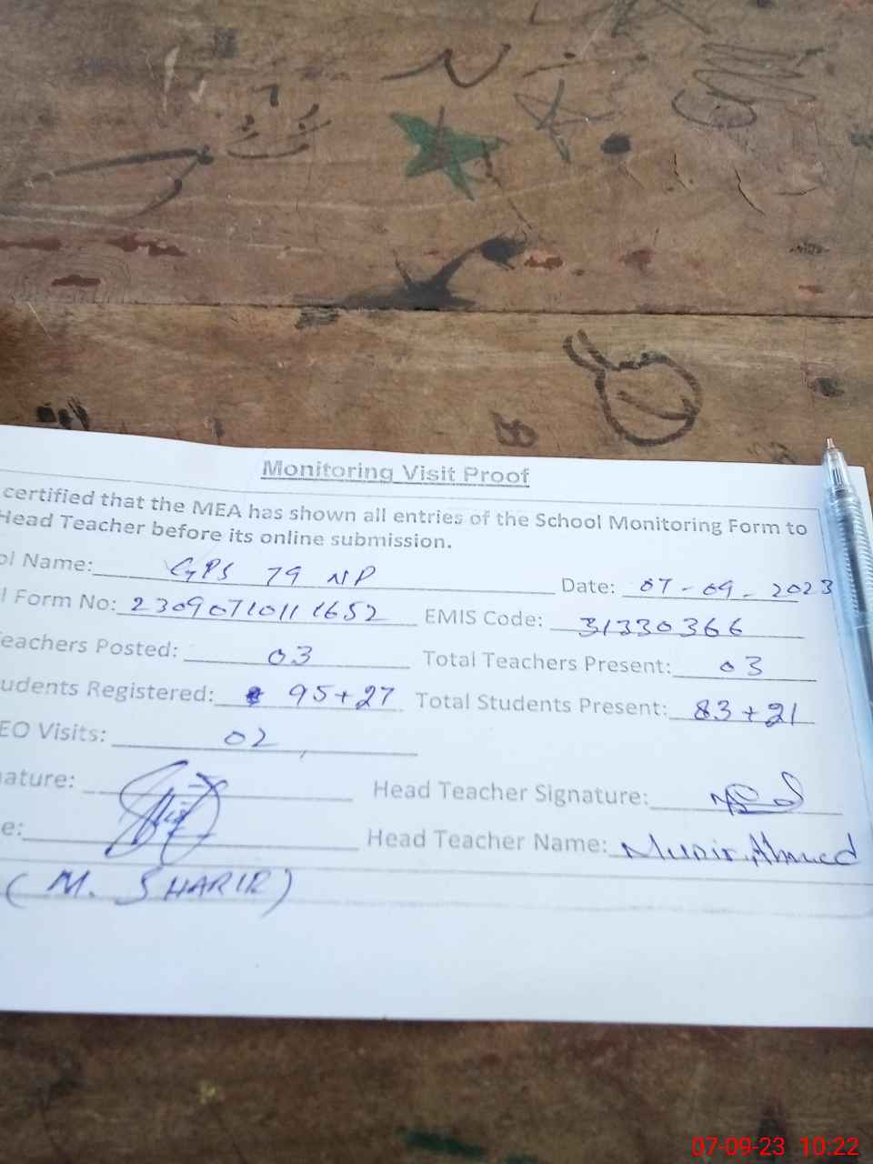 | EMIS Code: 31330366 | Name of School: GPS CHAK 79/NP | |||