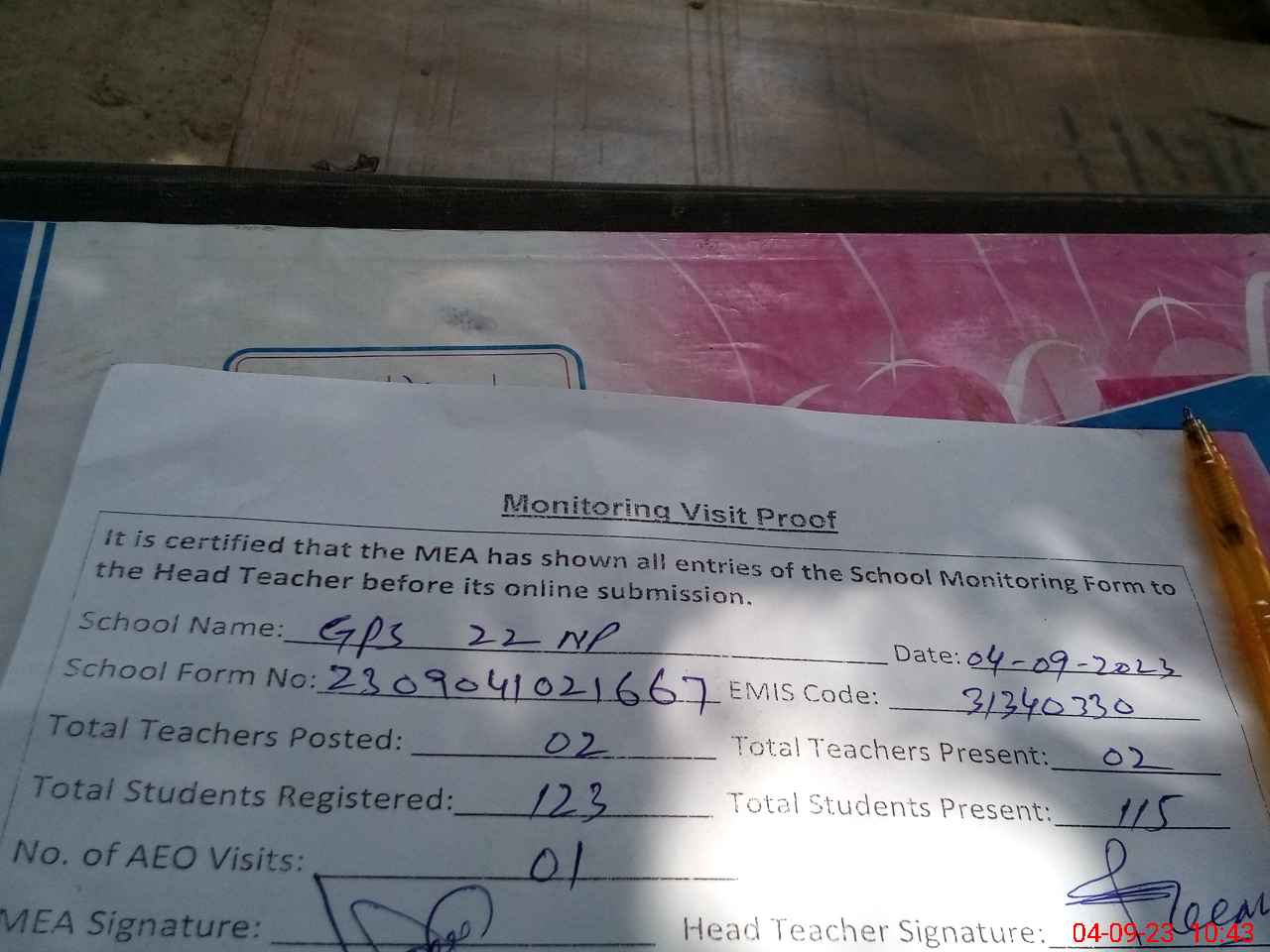 | EMIS Code: 31340330 | Name of School: GPS CHAK NO 22/NP | |||