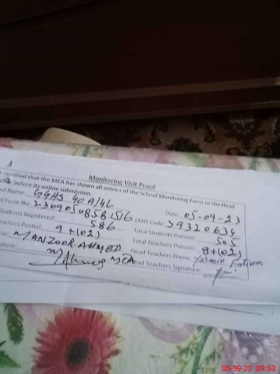 | Name: YA**** FA**** Designation: (School Headmaster's/Headmistress's) SST GRNERAL Phone/Cell Number: 03**** |