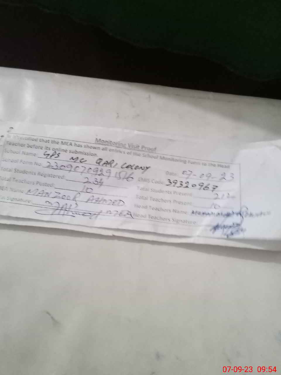 | EMIS Code: 39320967 | Name of School: GPS MC QARI COLONY | |||