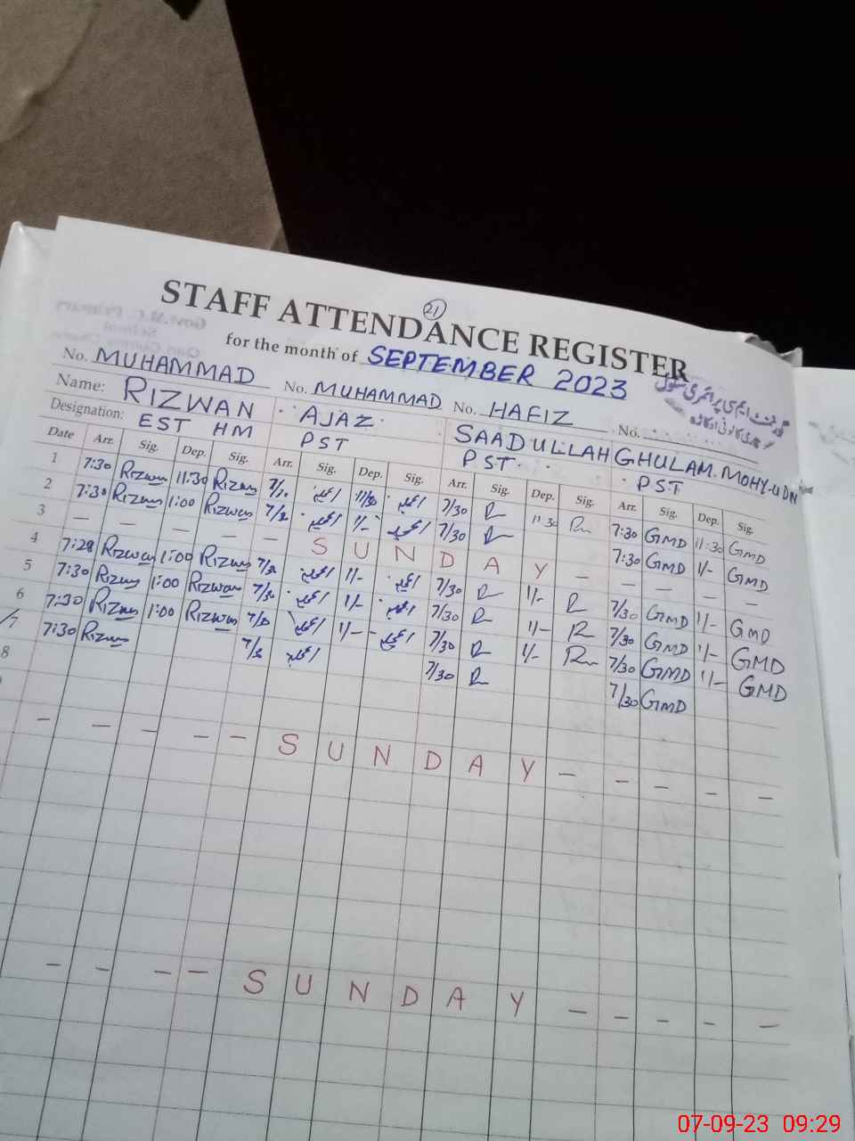 | Name: MU**** RI**** QA**** Designation: (School Headmaster's/Headmistress's) EST Phone/Cell Number: 03**** |