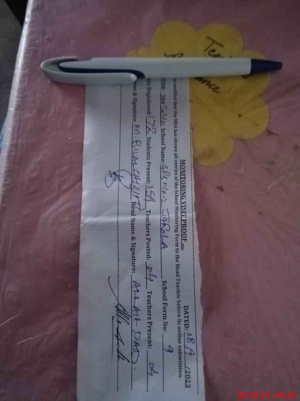| Attendance Register | Head Teacher | MEA with School | Visit Proof |