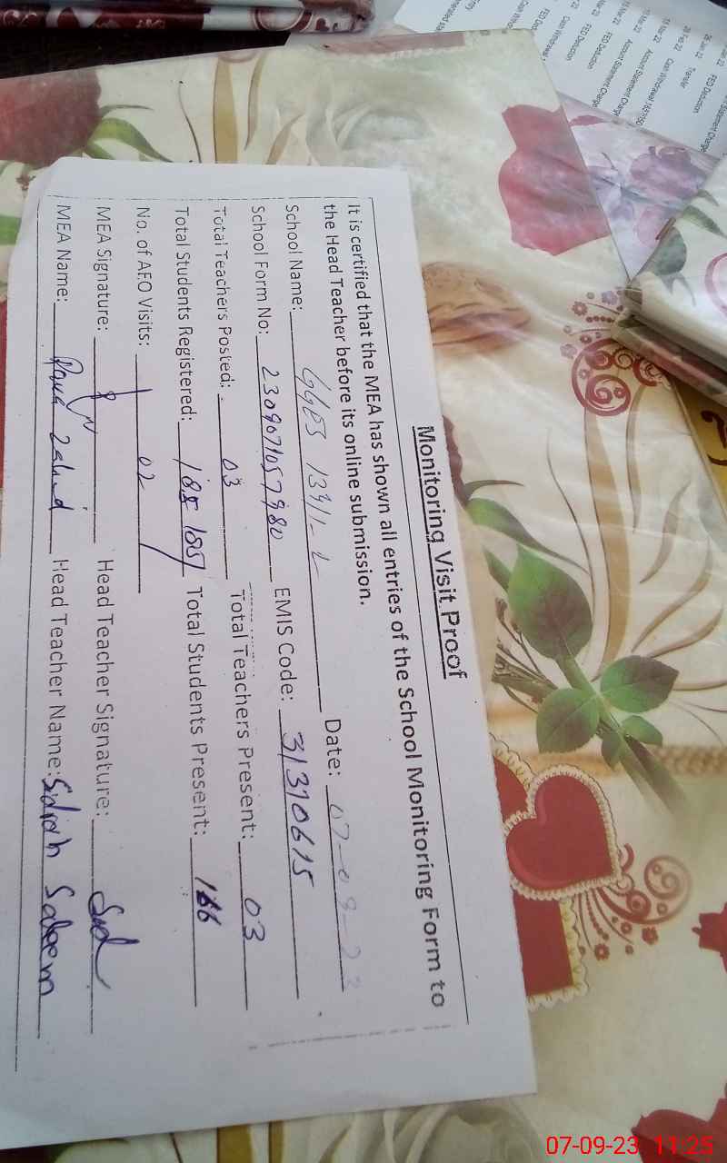 | Certified that this School was Inspected by the Undersigned MEA/DMO Today and the Information Stated Above is as Per Record. | |||||