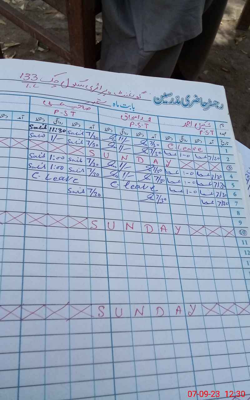 | Name: SH**** AH**** Designation: (School Headmaster's/Headmistress's) PST Phone/Cell Number: 03**** |