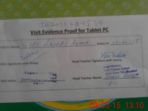 | Attendance Register | Head Teacher | MEA with School | Visit Proof |