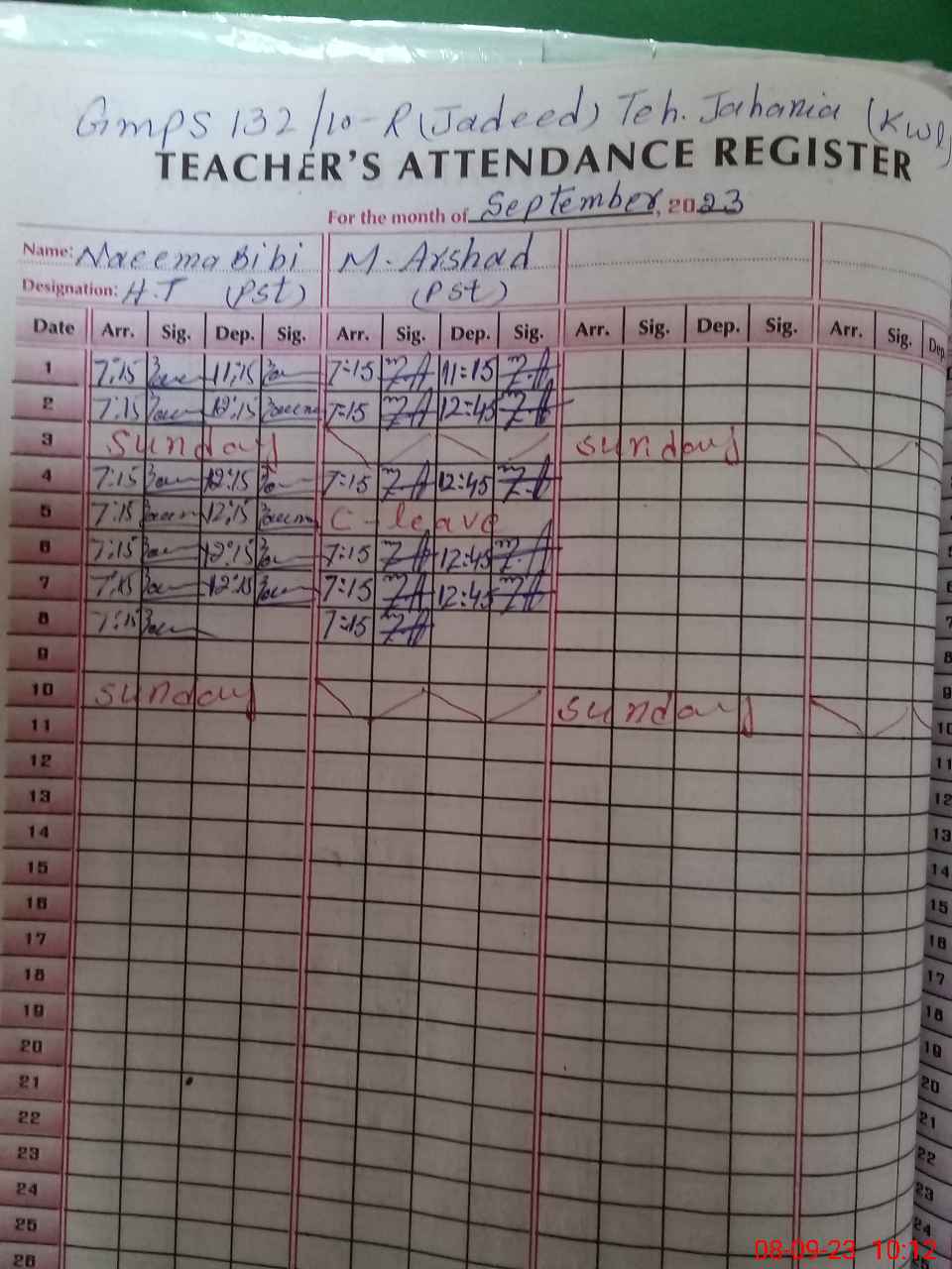 | Name: Ra**** Ir**** Designation: (School Headmaster's/Headmistress's) ESE (SCI-MATH) Phone/Cell Number: 03**** |