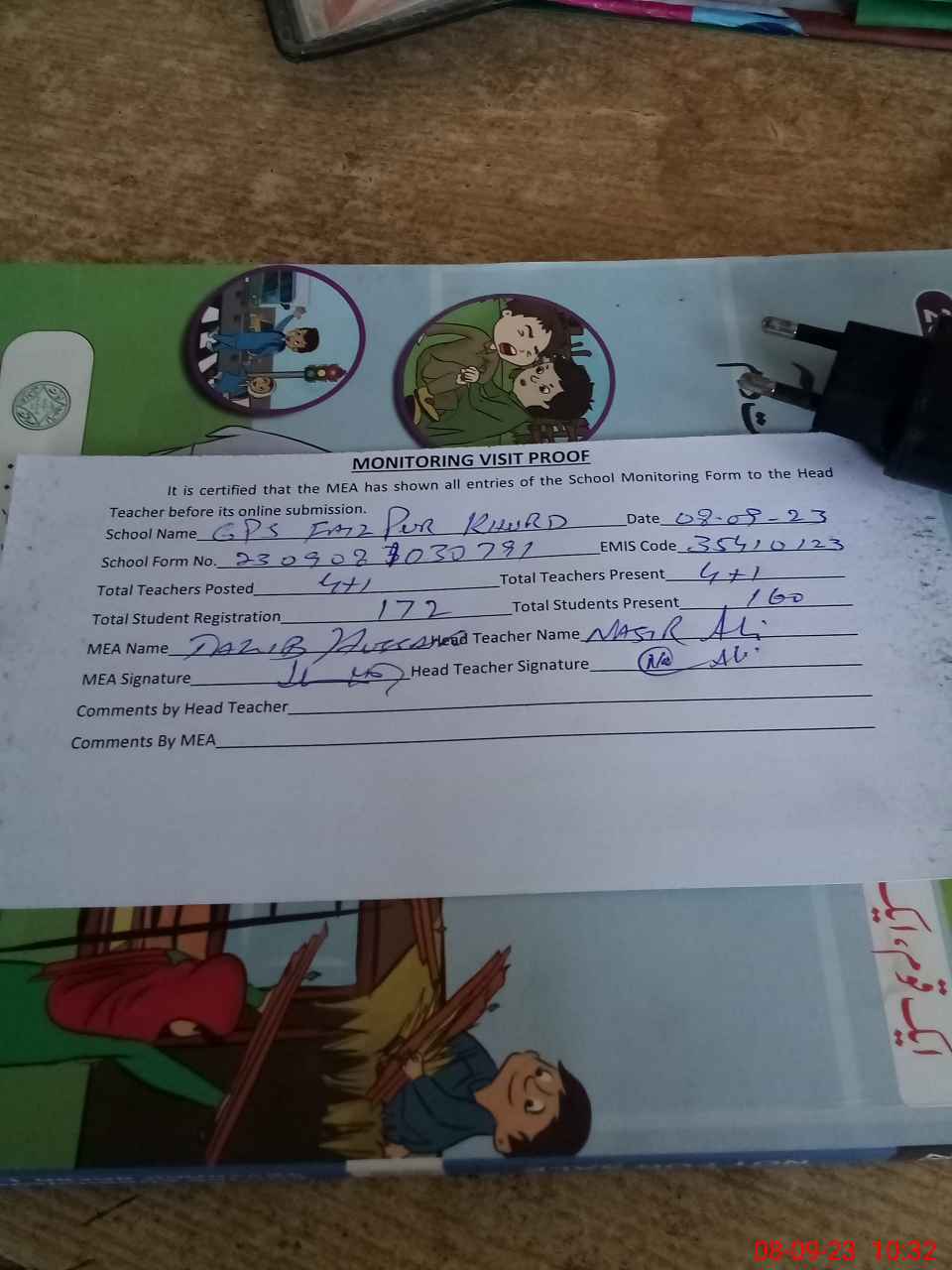 | Attendance Register | Head Teacher | MEA with School | Visit Proof |