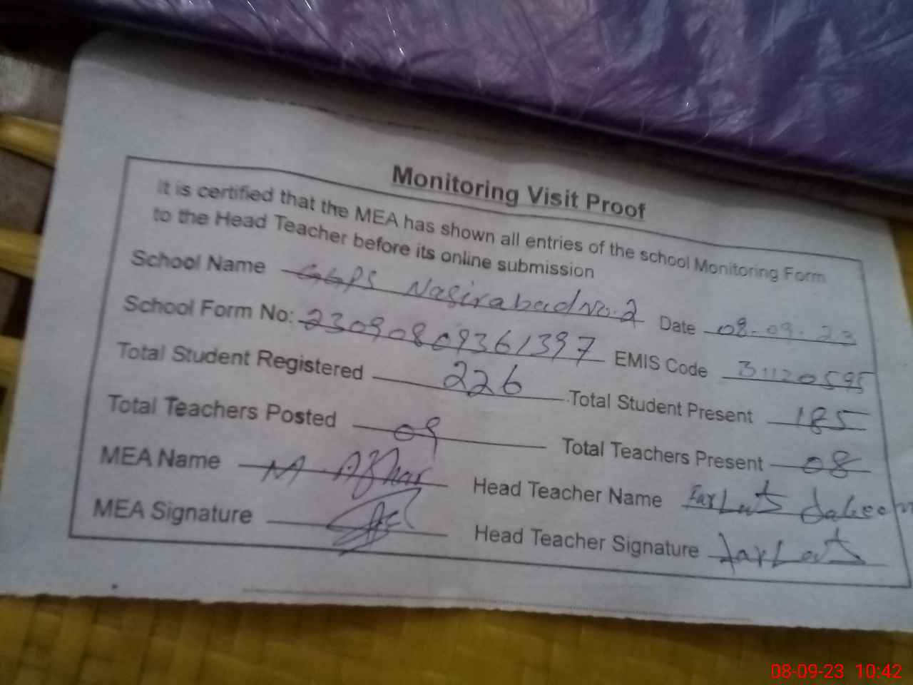 | EMIS Code: 31120595 | Name of School: GGPS NASIRABAD NO. 2 | |||