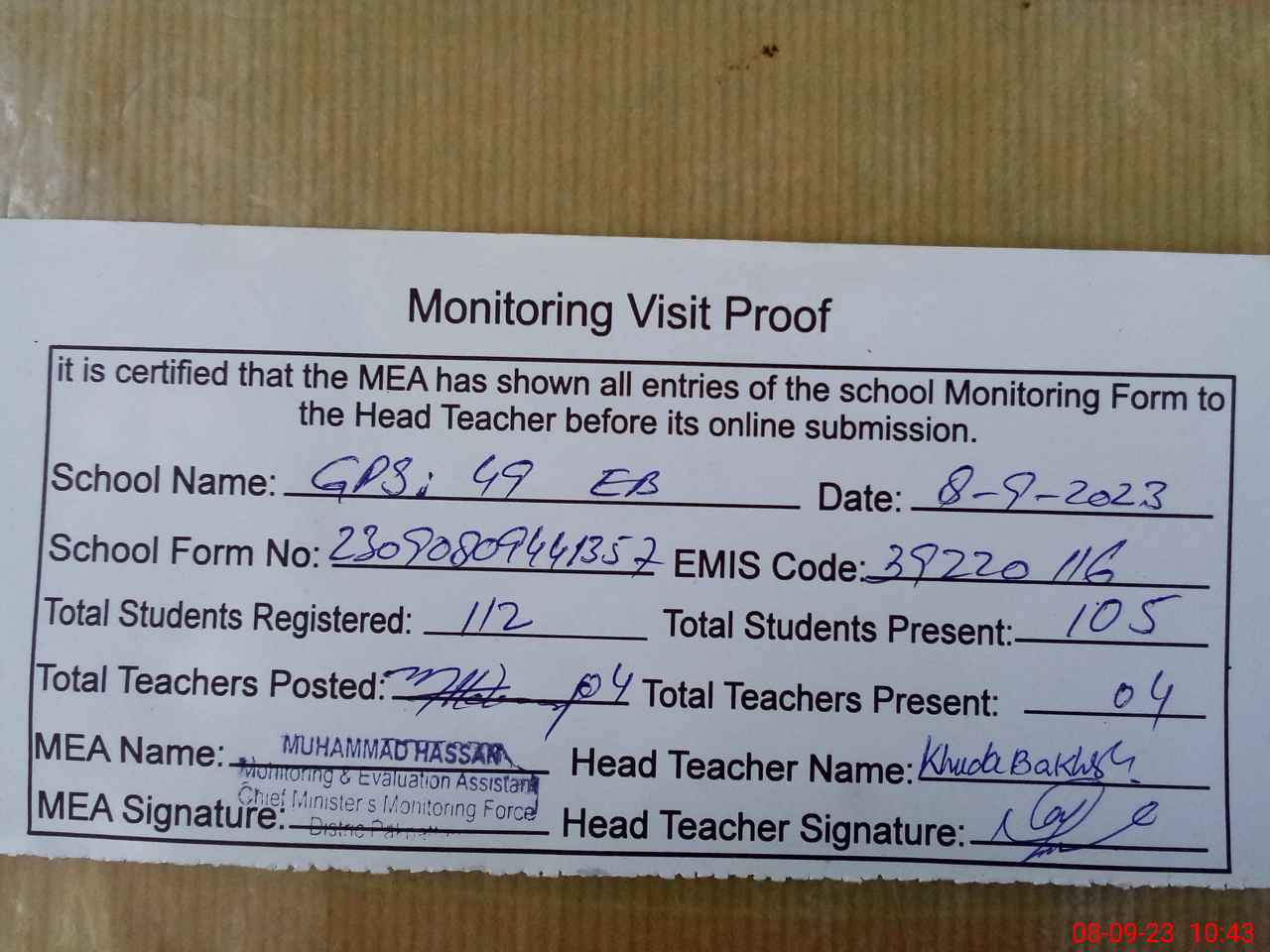 | EMIS Code: 39220116 | Name of School: GPS 49 EB | |||