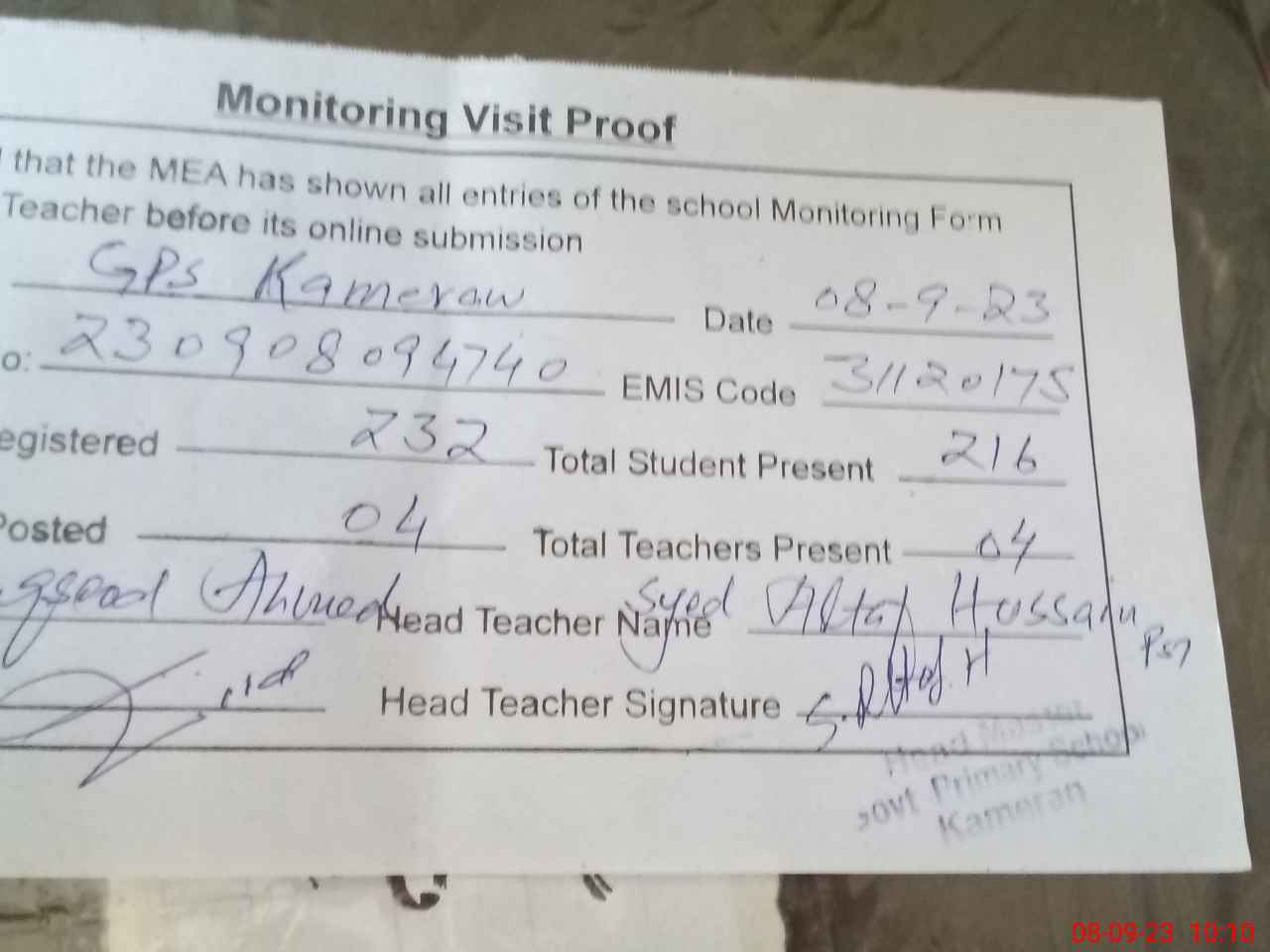 | EMIS Code: 31120175 | Name of School: GPS KAMERAN | |||