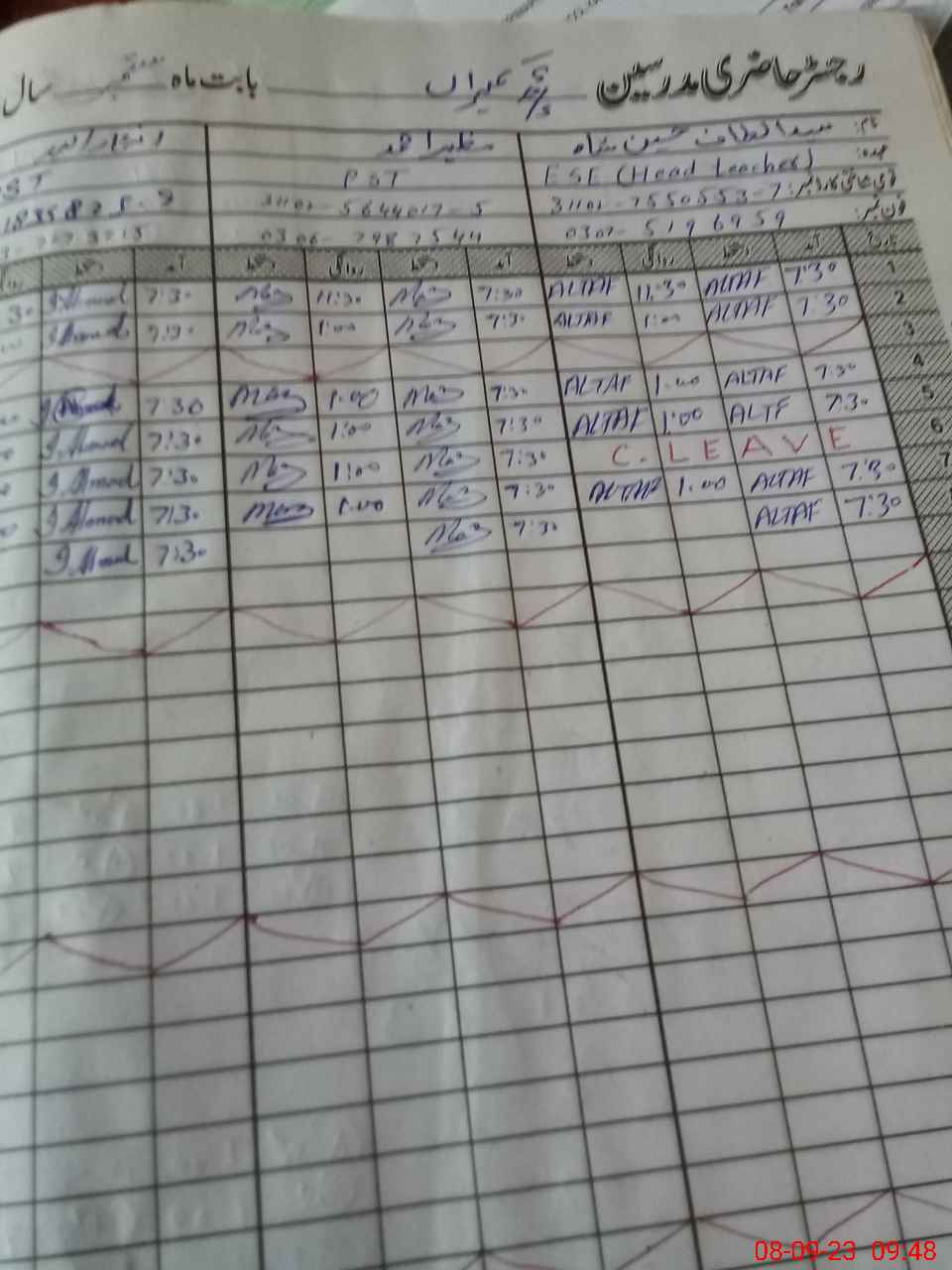 | Name: Sy**** Al**** Hu**** Designation: (School Headmaster's/Headmistress's) ESE Phone/Cell Number: 03**** |