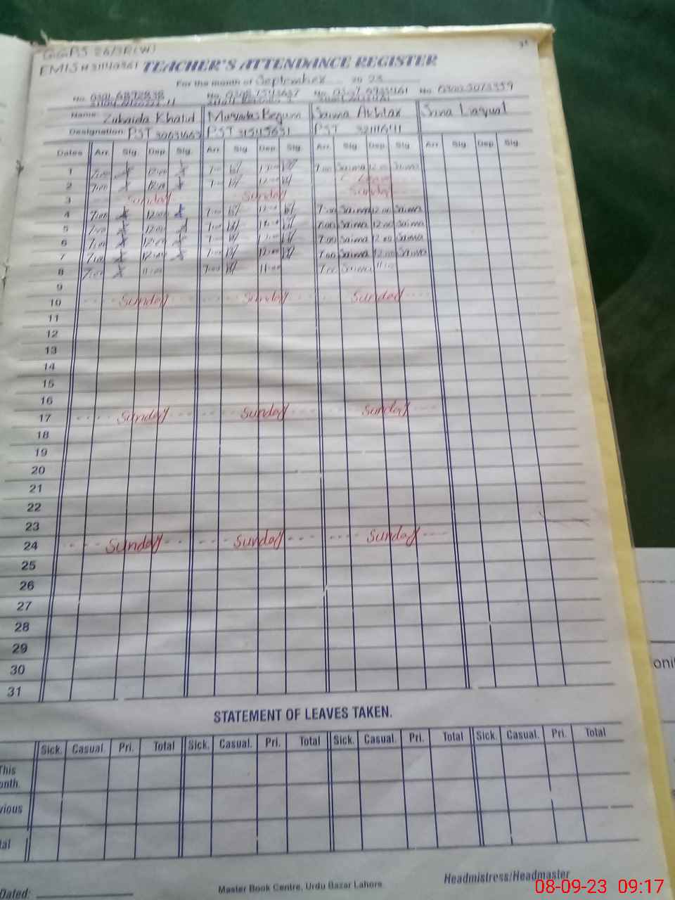 | Name: ZO**** KH**** Designation: (School Headmaster's/Headmistress's) PTC/JV Phone/Cell Number: 03**** |
