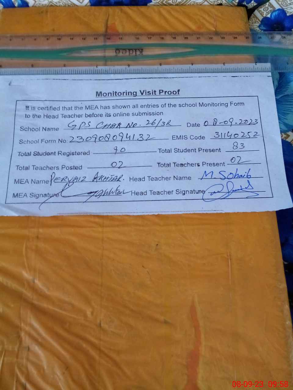 | EMIS Code: 31140252 | Name of School: GPS CHAK NO 26/3-R W | |||