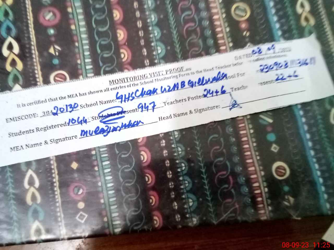 | EMIS Code: 38420130 | Name of School: GHS CHAK NO.42 NB GILL WALA | |||